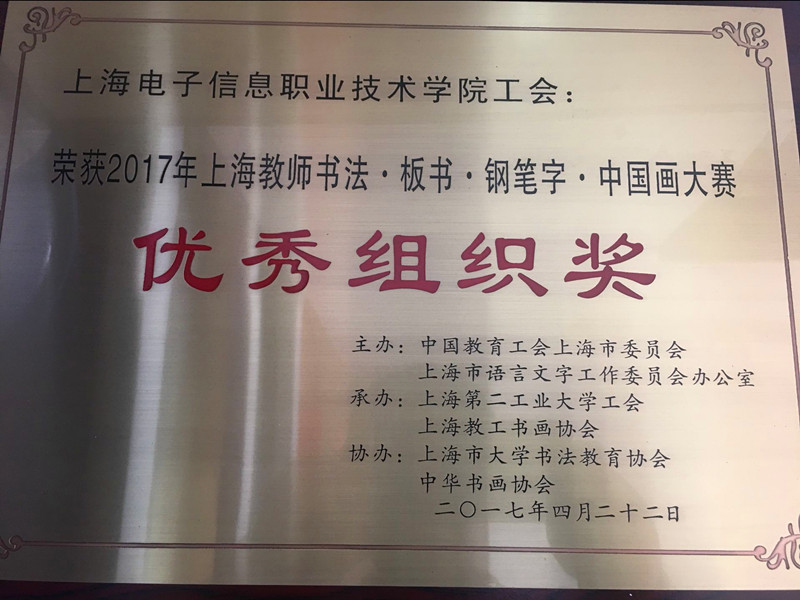 为弘扬社会主义核心价值观和中华优秀传统文化,加强教学基本功训练和师德师风建设,2017年4月22日由中国教育工会上海市委员会主办的2017年上海教师板书•书法•钢笔字•中国画大赛在上海第二工业大学举行,我院高度重视,精心组织,在学院中选拔教师参加。