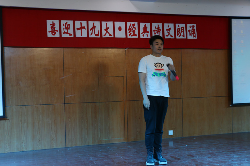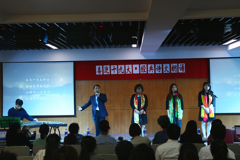 为弘扬中华优秀传统文化,提高民族语言文化素质,学校工会于2017年5月15日在I401举行“喜迎十九大,经典诗文朗诵”大赛,来自各分工会一百多名教职工参加。
